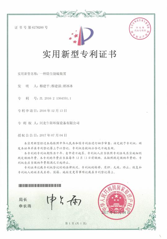 一種除塵脫硫裝置的實用新型_-河北午陽環(huán)保設(shè)備有限公司