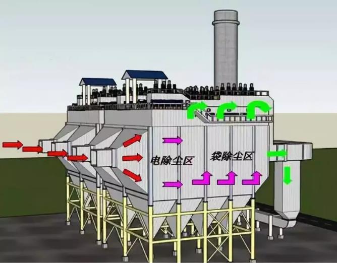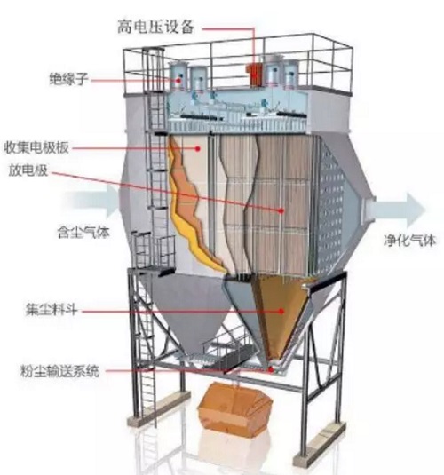 靜電除塵器是利用靜電場使氣體電離從而使塵粒帶電吸附到電_上的收塵方法。煙氣通過電除塵器主體結(jié)構(gòu)前的煙道時,使其煙塵帶正電荷,然后煙氣進入設(shè)置多層陰_板的電除塵器通道,由于帶正電荷煙塵與陰_電板的相互吸附作用,使煙氣中的顆粒煙塵吸附在陰_上,定時打擊陰_板,使具有_厚度的煙塵在自重和振動的雙重作用下跌落在電除塵器結(jié)構(gòu)下方的灰斗中,從而達到清理煙氣中的煙塵的目的。
